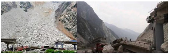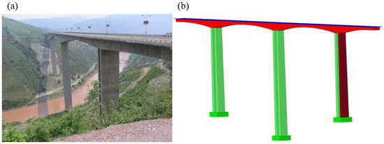 China is a mountainous country. With the continuous improvement of transportation infrastructure and the resulting construction, the number of large-span bridges across valleys has gradually increased. Owing to the complex terrain and extreme weather in mountain valleys, bridges across valleys are often at risk of rockfalls caused by heavy rainfall, earthquakes, and debris flows [1,2]. Being impacted by rockfalls is not uncommon for bridges. For example, in Wenchuan County, Sichuan Province, in China, due to seismic action and days of heavy rain, a bridge pier was impacted by rockfalls, causing its collapse. In the accident, the national highway was interrupted, three people were killed, and seven vehicles were damaged. Figure 1 shows the field photo of the bridge pier impacted by rockfalls [1]. A continuous rigid frame bridge is an important transportation infrastructure across the valleys. The pier is generally designed as a hollow thin-walled bridge pier (HTWBP) to save materials and reduce costs. HTWBPs in valleys are exposed to the threat of impact from accidental rockfalls.