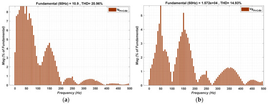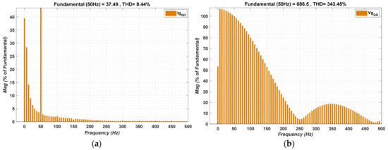 The output DC-link voltage, i.e., 500 V, is then inverted by three-phase three-level VSI to 260 V alternating output using 2 kHz switching frequency. The overall parameters of the proposed model are mentioned in the Table A1 of Appendix A. A 3-phase VSI is proposed by adopting six power electronic switches in MATLAB/Simulink; moreover, the control is carried out in the rotating reference frame(dq) for the purpose of simplification [44].