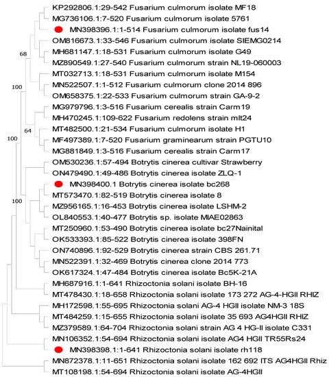 2.1. Pathogen Isolation for Root Rot and Grey Mold