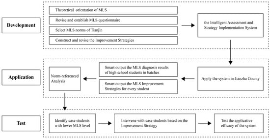Since 2012, the research team has begun to develop a series of mathematics learning quality measurement tools for elementary, middle, and high school students on metacognition, non-intellectual factors, and learning strategies. Additionally, by applying measurement tools in practice, the team has developed regional norms of mathematics learning quality, such as mathematics learning strategy for students of different grades in multiple districts in Tianjin, China. Thirdly, based on the diagnostic results of the assessment, individualized improvement strategies have been developed and provided for students at different levels of mathematics learning strategy. Finally, an intelligent assessment software was developed, through which participants can quickly obtain assessment and diagnosis results and suggestions of how to improve their learning strategies. The whole process is realized intelligently and efficiently by using computer software. The above four contents together constitute the Mathematics Learning Strategies Intelligent Assessment and Strategy Implementation System. The specific research and development process and main content of each module in the system are as follows.