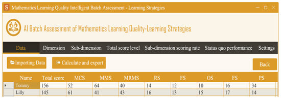 This study used “The Intelligent Batch Assessment of Mathematics Learning Quality for Primary and Secondary School Students—Learning Strategies” Intelligent Assessment and Strategy Implementation System, which was independently developed by our team and obtained a national patent in China [38].