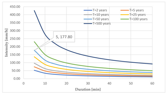 | Rain intensity (I); T = 50 years | 177.8 mm/h | |