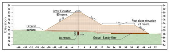 - Merchán-Sanmartín, B.; Aucapeña-Parrales, J.; Alcívar-Redrován, R.; Carrión-Mero, P.; Jaya-Montalvo, M.; Arias-Hidalgo, M. Earth Dam Design for Drinking Water Management and Flood Control: A Case Study. Water 2022, 14, 2029. [Google Scholar] [CrossRef]