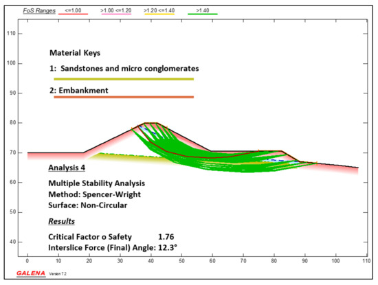 - Spencer, E. A Method of analysis of the Stability of Embankments Assuming Parallel Inter-Slice Forces. Géotechnique 1967, 17, 11–26. [Google Scholar] [CrossRef]