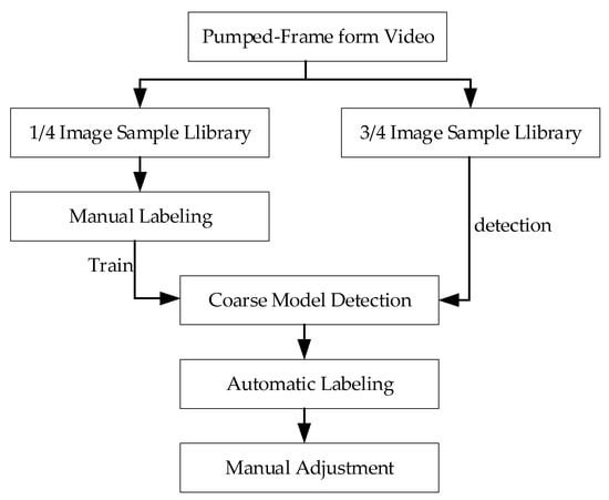 This annotation information was then used to train the object detection model. Because the amount of data was small and the model and data were not optimized, it was named the coarse detection model. The coarse detection model was used to detect the remaining unlabeled images through the semi-automatic annotation program [35], which automatically generated a txt text file in the same format as MakeSense. The automatically generated annotation files were manually checked and fine-tuned by the MakeSense tool to complete the detection box annotation of all image sample libraries.