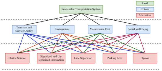 The fuzzy logic-based analytic hierarchy process (AHP) technique is also known as the fuzzy analytic hierarchy process (FAHP). The AHP method and the fuzzy AHP methodology are similar, but the fuzzy AHP method turns the AHP scale into a fuzzy triangle scale that may be used immediately. Fuzzy logic is an approach that deals with uncertain data and knowledge [42]. The experts debated extensively to discover the criteria influencing the selecting and ranking options in Taxila, Pakistan. The indicators are collected from the literature and modified to fit the context of the local prevailing conditions for measuring sustainable urban transport systems. These criteria are provided in Table 1.