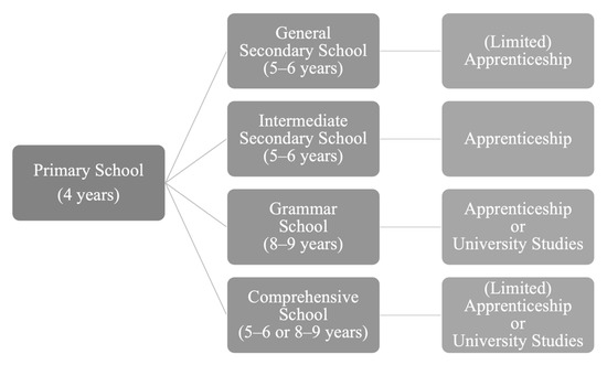- Becker, M.; Neumann, M.; Dumont, H. Recent developments in school tracking practices in Germany: An overview and outlook on future trends. Orb. Sch. 2017, 10, 9–25. [Google Scholar] [CrossRef]