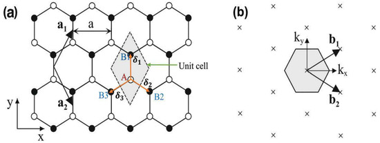 Two primitive vectors of a lattice are written in the hexagonal mesh of monolayer graphene, as shown in Figure 4a: