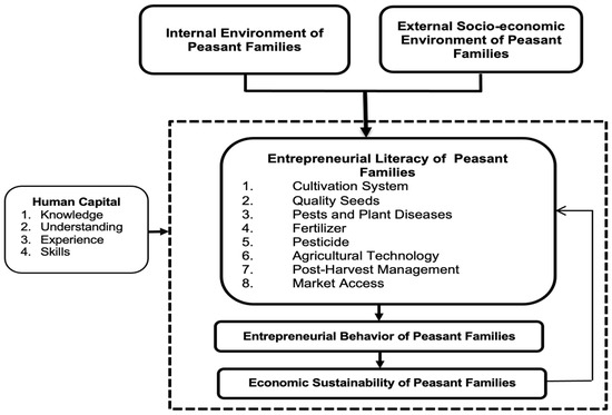Entrepreneurial literacy starts with cultivation systems, quality seeds, pests and plant diseases, fertilizer, pesticides, agricultural technology, post-harvest management, and market access. In addition, entrepreneurial literacy affects the entrepreneurial behavior of peasant families, which in turn encourages their economic sustainability. The entrepreneurial process of peasant families is influenced by the human capital owned by the family, including knowledge, understanding, experience, and skills.