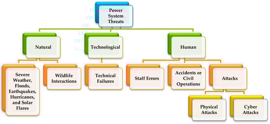 - Bompard, E.; Huang, T.; Wu, Y.; Cremenescu, M. Classification and trend analysis of threats origins to the security of power systems. Int. J. Electr. Power Energy Syst. 2013, 50, 50–64. [Google Scholar] [CrossRef]