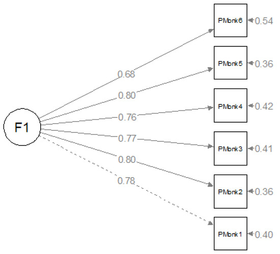 Confirmatory factor analysis found a good fit for the model, as shown by the goodness-of-fit indices (chi-square = 55.64, df = 9, p-value = 0.000, CFI = 0.96, TLI = 0.94, RMSEA = 0.08 CI95% [0.067–0.097], and finally the SRMR = 0.03, less than 0.05). With these results, the internal structure of six items distributed in a single factor is confirmed (Figure 1), which corroborates the factorial structure of the scale taken as a base.