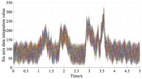 where represents the hand trajectory six-axis data integration value; represents the acceleration in the x-axis direction; represents the acceleration in the y-axis direction; represents the acceleration in the z-axis direction; represents angular velocity in the x-axis direction; represents the angular velocity of the y-axis; represents angular velocity in the z-axis direction.