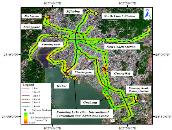 Deformation rate within 500 m buffer of Kunming metro line.