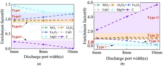 3.2.1. Element Enrichment at Different Discharge Ports Widths