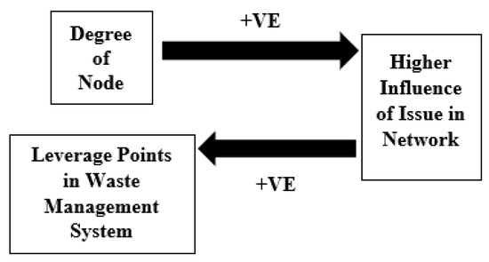 A .txt file named HHSWM_RData was initially created in Notepad. It summarized all the HSW management issues in pairs showing the ‘driver’ first separated from the ‘outcome’ with space (using the Tab key). A ‘driver’ is a node causing a change in another (the ‘outcome’). In this study, the issues considered as ‘drivers’ are those that have a greater out-degree (i.e., are causing changes to many other nodes) than in-degrees (i.e., than other nodes influencing them). The study hypothesizes that the greater the degree of a given node, the more influential it is in the network and thus should be prioritized when developing waste management strategies, as summarized in Figure 2 below. In these files, the issues were, however, represented as numbers, as shown in Table A3 in Appendix A, to enable better visualization in the networks. The TXT2PAJEK software (Technical University of Munich 2020) was then used to convert the HHSWM_RData from a .txt to a .net file. Network data in PAJEK and VOSviewer software was imported in the .net format, while the .xlsx file format developed in Microsoft Excel was used for analysis in R.