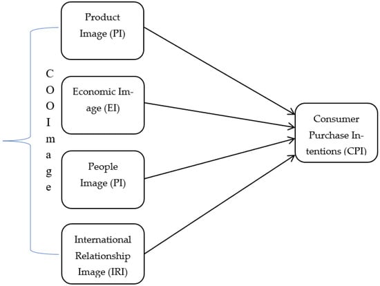 A customer’s impression of a country can be created in terms of the quality of the goods or amenities sourced in that location [12,31,32,33]. According to the consumer’s experience with specific merchandise, they may form a good or bad notion of a country which, consequently, affects an individual’s intent to buy from a certain nation [7,34,35,36]. For instance, most customers worldwide opine that several countries have a greater edge in various product groups, e.g., Germany when it comes to automobiles, South Korea is known for beauty products, and France is famous for its exquisite red wine. Under these considerations, we hypothesize in this study that: