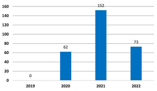 Books, chapters, conference papers, editorial notes, white papers, and periodicals, among others, were omitted to ensure academic rigor and the high quality of the selected publications [73]. Selected articles were those published between 2019 and June 2022. Consistent with previous research [28], we took 2019 as the starting year because the outbreak of COVID-19 in China occurred at the end of this year [74]. These criteria resulted in a refined collection of 287 articles for the final analysis. All of these articles were relevant to the scope of the present study after being screened based on their titles, abstracts, and, if necessary, the full text. Figure 1 depicts the review process.
