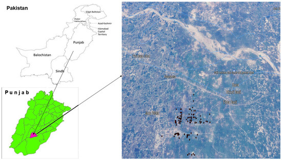 Base map of sampling sites in Lodhran District of Punjab Province, Pakistan.