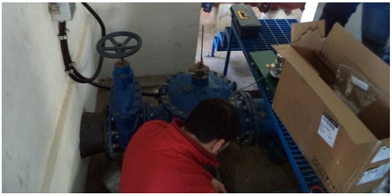 The controller is reading simultaneous flow demanded in the La Calera area through a pulse output generated by a DN300 electromagnetic flowmeter located upstream of the PRV on the same line. Before starting all measurements, it was checked that the flowmeter was far enough from the PRV and that it was at least five times the size of the meter, according to the flowmeter technical specification, to avoid any disturbance on the flow readings.
