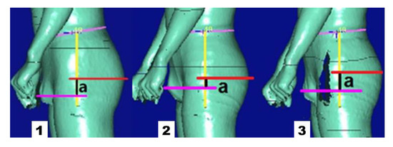 We can observe the “functionality” through an objective comparison of our designed underwear. The models were obtained with the help of the VITUS Smart XXL 3D non-contact body scanner, with dimensional standards conforming to ISO 7250. Figure 2 shows that the No. 1 model of a man wears ordinary trunks; the No. 2 and 3 models of the same man wear the boxer-briefs of multi-construction lines and corrective effect with two materials.
