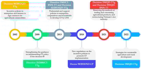 Figure 4. Key and representative policies related to CF in Vietnam. Source: Author’s synthesis based on the policy documents [126,127,128,129,130,131,132,133].