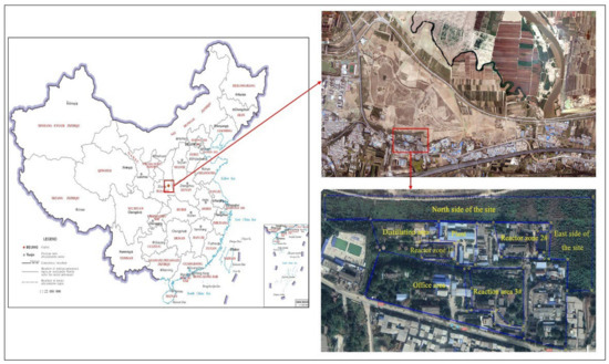 The main product of this chemical plant is food-grade fumaric acid (antisuccinic acid). The chemical plant was established in 2003 and shut down in 2018, with an annual production capacity of around 10,000 tons of fumaric acid. The steps of production are as follows: first, benzene is oxidized with excess air in a fluidized bed or fixed bed reactor to produce maleic anhydride; then, maleic anhydride is absorbed into maleic acid by the circulating acid, which is isomerized under the action of thiourea catalyst, filtered, washed, and dried to obtain fumaric acid. The fumaric acid brownfield is divided into functional areas: the distillation area, reactor area, office area, plant, and dormitory. The exact location of the study area was shown in Figure 1.