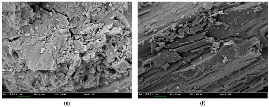 As seen from Figure 3e,f, SEP and T-SEP was an aggregation of fiber bundles, needles, hairs, and sheets, and was covered with impurities, such as talc and calcite, which may affect its adsorption capacity. The surface of the T-SEP was relatively smooth, and the impurities were reduced. The fiber bundle, needle, hair, and flake aggregate structures were looser. The linear structure of T-SEP was broken, and the aggregate was significantly reduced because the surface structure of SEP partially collapses as a result of the thermal modification.