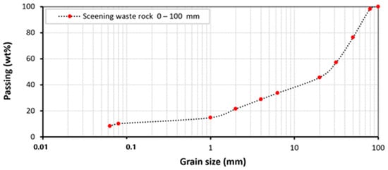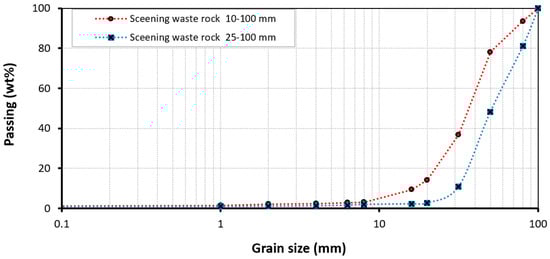 In particular, the influence of the fine and coarse aggregates on the mixture’s compactability of the screening waste rock was studied. The purpose of the characterization of the 0–100 mm aggregates in their raw state is twofold: