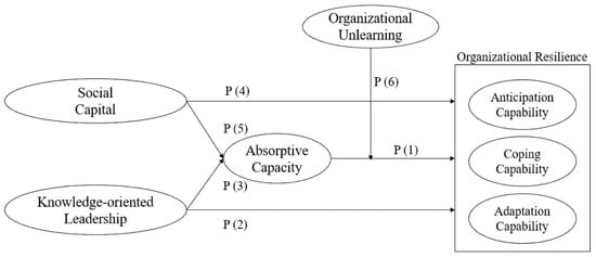 Starbuck [143] explained unlearning as a part of the process of coping with strong uncertainty and a precondition for learning by highlighting the possible unlearning process with no reconfiguration of new patterns. Orth and Schuldis [144] examined 244 employees from German and Austrian organizations to study the organization’s learning and unlearning capability for resilience during COVID-19. Although the scholars found the positive effect of organizational learning on OR, they failed to prove the moderating effect of unlearning capability on the relationship between organizational learning and resilience. Unlearning was proposed as an antecedent of inevitable change and organizational learning in Wang’s [139] model of OR and learning capabilities. According to Morais-Storz and Nguyen [145], unlearning capability along with learning is crucial for making an organization strategically resilient. Unlearning is assumed to have organizational-level effects [146], such as influencing organizational readiness for alterations [147] and affecting the organizational knowledge absorptive capacity [148]. In addition, following Koronis and Ponis’ [140] idea, Evans, Cregan, and Wall [149] classified resilience into four domains, i.e., preparedness, responsiveness, adaptability, and learning, and they argued that all of these capabilities are positively affected by the unlearning ability of firms. Based on this discussion, the author highlights the unlearning capability as an antecedent of organizational resilience.