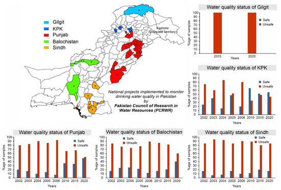 Drinking water quality status at different locations in Pakistan, reproduced from the literature [25].