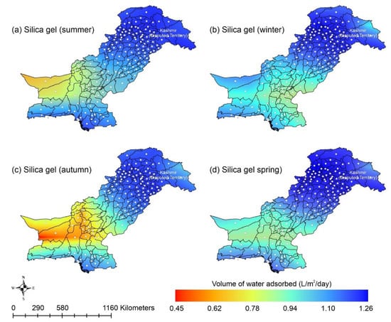 Season-wise geospatial mapping showing the adsorption-based AWH potential by silica gel across Pakistan.