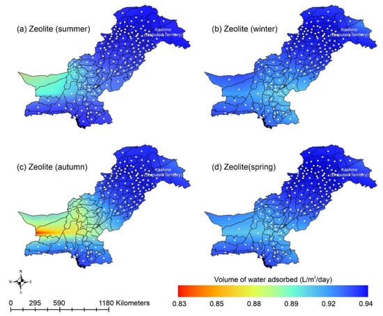 Season-wise geospatial mapping showing the adsorption-based AWH potential by zeolite across Pakistan.