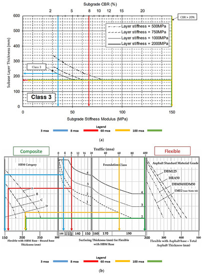 - Design Manual for Roads and Bridges (DMRB) CD 226. Design for New Pavement Construction. Available online: https://www.standardsforhighways.co.uk/ha/standards/ (accessed on 14 November 2021).