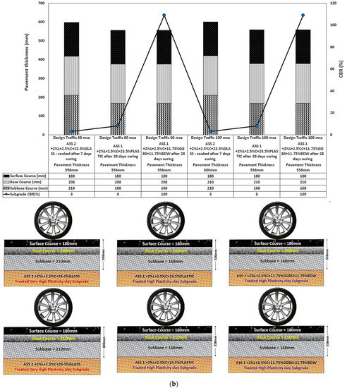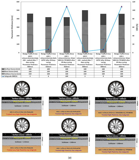 - Amakye, S.Y.O.; Abbey, S.J.; Booth, C.A.; Oti, J. Road Pavement Thickness and Construction Depth Optimization Using Treated and Untreated Artificially-Synthesized Clay Road Subgrade Materials with Varying Plasticity Index. Materials 2022, 15, 2773. [Google Scholar] [CrossRef]