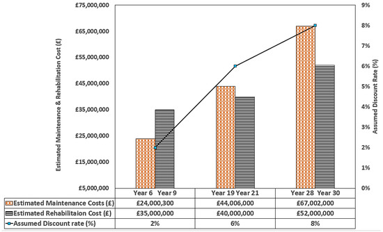 - Life Cycle Cost Analysis. U.S. Department of Transportation, Federal Highway Administration; 2017. Available online: https://www.fhwa.dot.gov/infrastructure/asstmgmt/lccasoft.cfm (accessed on 14 August 2022).