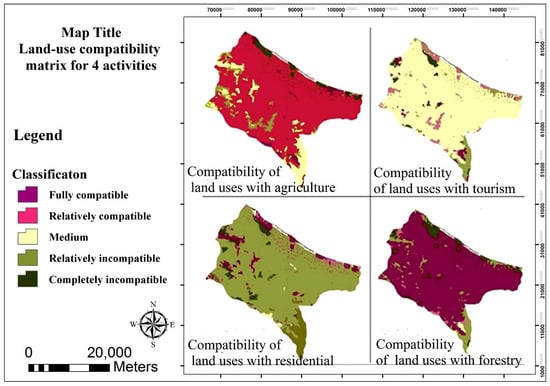 In Figure 6, the results of land valuation are presented in terms of compatibility with land uses.