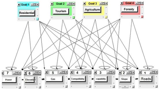 Scientific and political debates about the principle of sustainable development have contributed to the usage of environmental protection and improvement to guide human activities and interventions [69]. In this respect, recognizing EIPs is important before loading various activities. Hence, assessing the indicators of ecological livability is the first step of the research process regarding spatial suitability requirements. Then, in the next steps, indicator layers (elevation, slope, land-use compatibility, land capability, accessibility to roads, distance from power transmission lines, distance from gas transmission pipeline) are selected and prepared to assess the capability of the study area in four kinds of activities including agricultural-pasture, forestry, residential, and tourism.