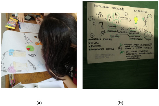 (a) Students’ collaborative activities (mind-mapping); (b) mind-map used in algorithmic design.
