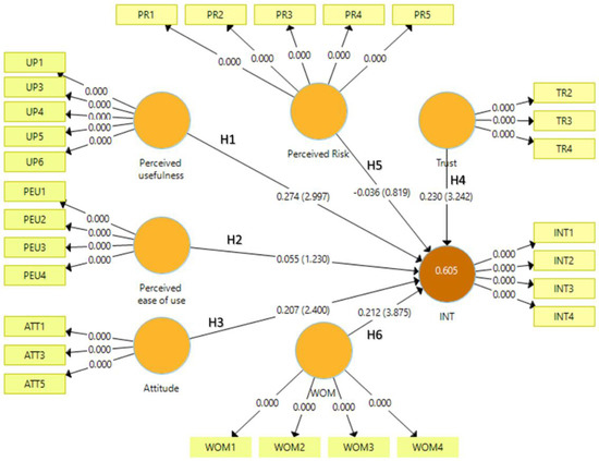Additionally, the WOM variable was significant and therefore Hypothesis 6 was accepted, as Moorthy, Kamarudin, Xin, Hui, Way, Fang and Carmen (2021) [92], and Liu et al. (2021) [61] showed that this variable had a greater impact on the purchase intention process. However, ease of use was not significant, so Hypothesis 2 is rejected.