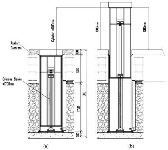 A developed anti-tank bollard. (a) Descending status. (b) Rising status.