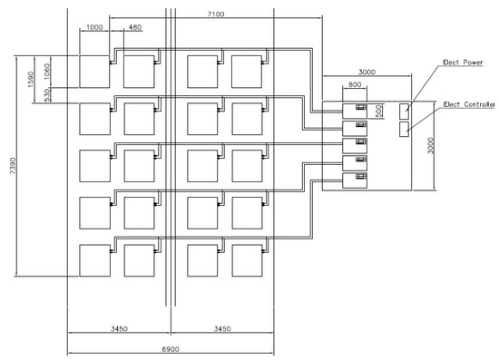 Based on the finite element analysis, it was clear that the minimum pullout resistance against an enemy tank was satisfied by replacing rock drops with anti-tank bollards. However, unlike the existing rock drop, a single row of bollards has a limitation in securing a 30 min check in nontactical situations. Considering damage by explosion apart from the pullout, battle commanders stated that it is tactically necessary to apply at least five rows in order to achieve a minimum 30 min delay. Based on their opinion, this study suggests an anti-tank bollard system, as shown in Figure 6.