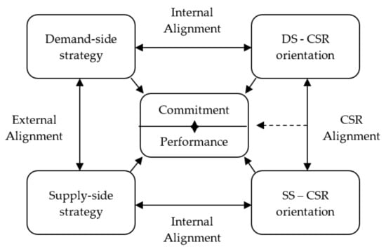 This hypothesis reflects the assumption that while alignment is expected to impact the commitment-performance relationship, there is insufficient empirical evidence to suggest whether this relationship should be modelled as either moderating or mediating. Figure 2 provides an overview of these key relationships within our CSR alignment model (see Figure 2).