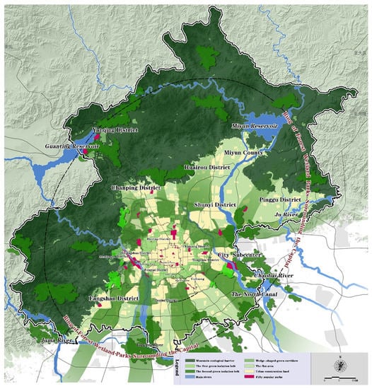 - Ding, T.; He, J. The first and second green isolation belts area added 18 new parks to increase green nearly 10,000 mu green chain gradually closed. Green. Life 2018, 11, 10. [Google Scholar]