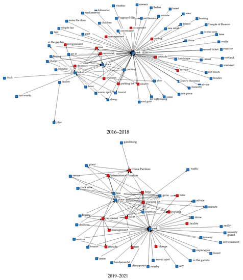 Analysis of the negative semantic network in park evaluation in different periods.