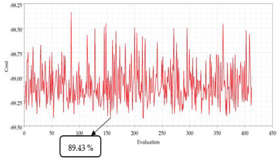 At the end of the genetic algorithm process (see Figure 14), the highest efficiency (89.43%) was obtained in the 156th iteration. The stator outer diameter and the axial length that were formed at this efficiency point were 100.82 mm and 73.20 mm, respectively.