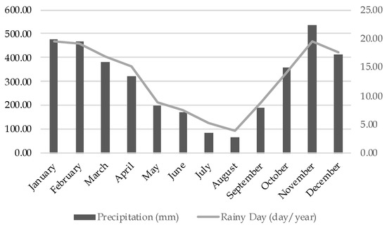 Rainfall and day of rain situation in the study area (source: BPS Kabupaten Banyumas [53]).