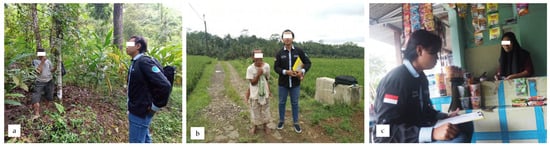 The data collection process through interview to (a) one of a local leader; (b) farmer who practice traditional method; and (c) villager with landslide event experience (taken during fieldwork on April 2021).