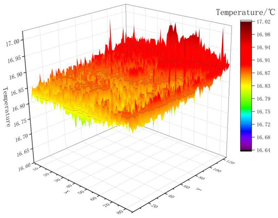 The IRT data in the test area were converted to CSV files by the software. The CSV data sheet could be converted into a temperature matrix using Python software. The expression of IRT data in frame p is shown in Equation (11):