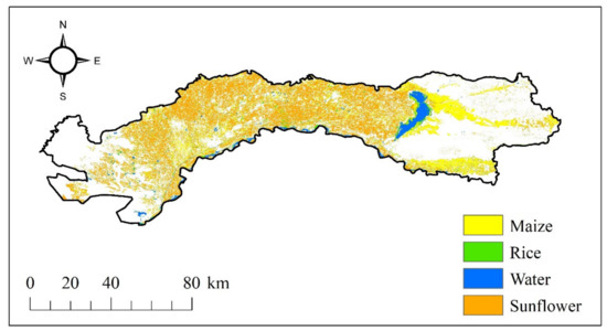 - Yu, B.; Shang, S. Multi-year Mapping of Maize and Sunflower in Hetao Irrigation District of China with High Spatial and Temporal Resolution Vegetation Index Series. Remote Sens. 2017, 9, 855. [Google Scholar] [CrossRef]