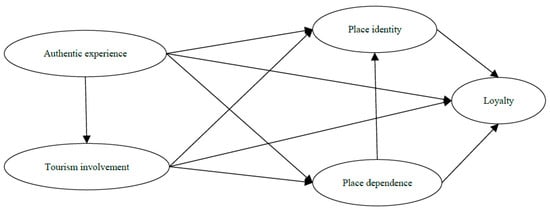 In many differentiated contexts, several studies have verified that place dependence has a significant positive impact on place identity, and place attachment can also directly affect tourists’ loyalty to tourist destinations. Zhou et al. (2022) summarized a comprehensive framework on place attachment and tourist loyalty, and 22 different hypotheses were put forward from these 56 studies. The results obtained using the meta-analysis method reveal that place attachment and its dimensions are positively related to tourist loyalty, which includes tourist behavior loyalty, attitude loyalty, and composite loyalty [27]. Villages are often valued because the experiences they provide satisfy people’s longing and desire for traditional culture and “free” living. Tourists can easily establish an emotional connection with the place while traveling, thereby generating a sense of belonging and loyalty. Therefore, in the context of rural tourism, the following hypotheses are put forward: